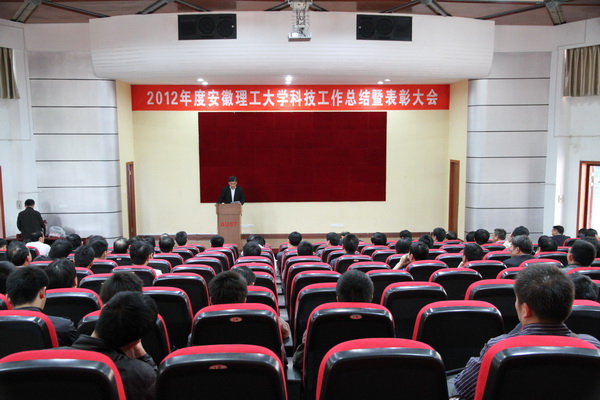 4月26日下午,学校2012年度科技工作总结暨表彰大会在校本部六角楼报告厅召开。校党委书记张明旭,副校长叶醒狮、刘泽功、郭永存、王其东、孟祥瑞出席会议。会议由科技产业处处长华心祝主持。
