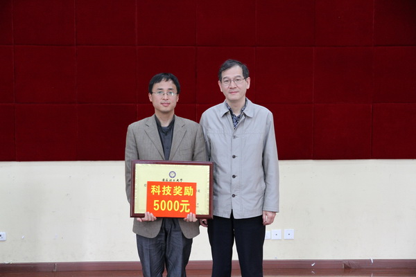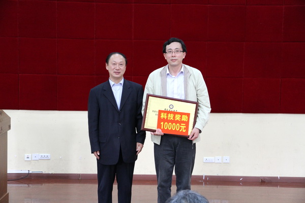 刘泽功宣读了学校对2012年度科技贡献集体奖和个人奖的表彰决定。叶醒狮、郭永存、王其东分别为科技贡献集体奖一等奖能源与安全学院、二等奖材料科学与工程学院和三等奖经济与管理学院颁奖。