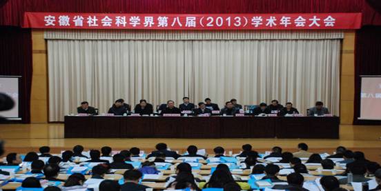 12月1日,以“美好安徽圆梦中国:自信•自觉•自强”为主题的安徽省社会科学界第八届(2013)学术年会在合肥举行。省委常委、宣传部长曹征海发表书面讲话,要求社科界为全面深化改革贡献智慧和力量。省政协副主席赵韩出席大会开幕式并致辞,省社科联党组书记、常务副主席刘飞跃主持开幕式。来自省内高等院校、科研院所、学术团体、党政机关和企事业单位的专家学者400多人与会,我校人文学院教师莫良元和代大为应邀参加了此次年会。