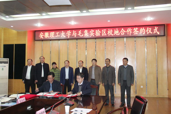 会上,孟祥瑞代表学校与毛集实验区管理委员会副主任陶应友签订了安徽理工大学与毛集实验区管理委员会校地合作框架协议。