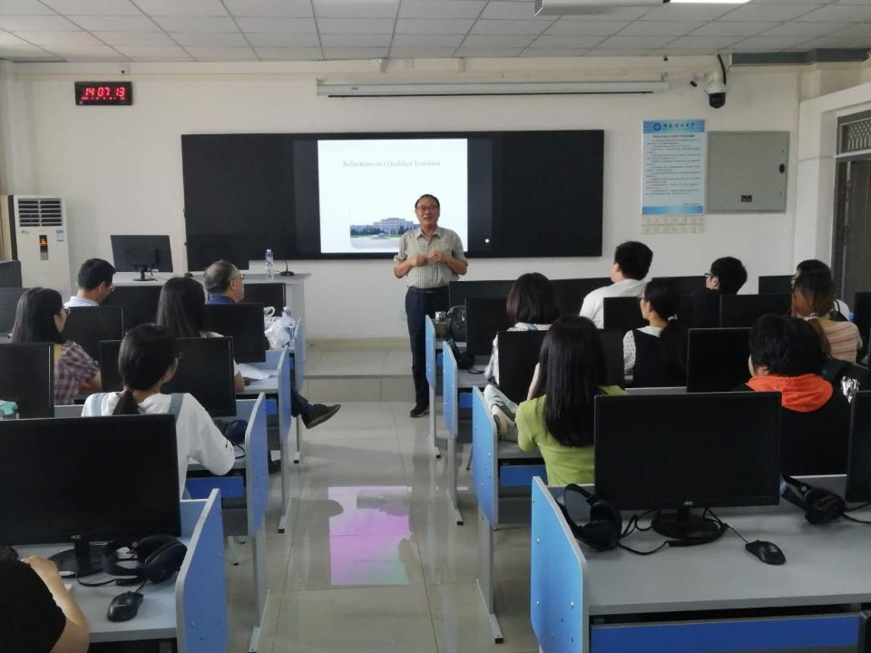 9月18日下午,应社科处、外国语学院邀请,安徽大学朱跃教授分别在百川楼东304和崇智楼外国语学院二楼招聘厅为外国语学院师生作两场学术报告。