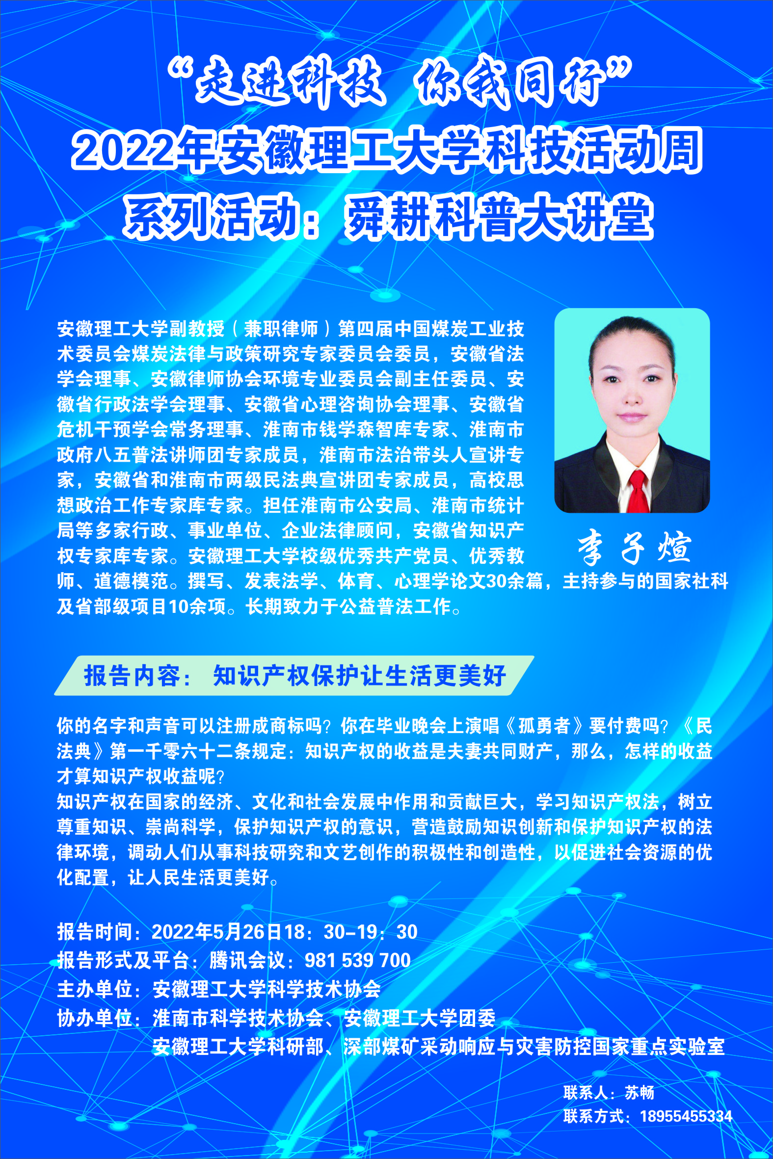 2022年是党的二十大召开之年,是开启第二个百年奋斗目标新征程之年,是实施新修订《中华人民共和国科学技术进步法》开局之年。为加快推进科技规划政策扎实落地,广泛宣传科技创新成果,开展科学普及惠民活动,根据科技部、中央宣传部、中国科协《关于举办2022年全国科技活动周的通知》(国科发才〔2022〕69号)精神,以及省教育厅、科技厅、省委宣传部、省科协相关文件精神,我校将于5月21日至28日举办科技周活动。现结合当前疫情防控形势和我校实际,舜耕科普大讲堂系列活动将于5月23-27日在线上开展,欢迎各位老师同学参与交流学习。
