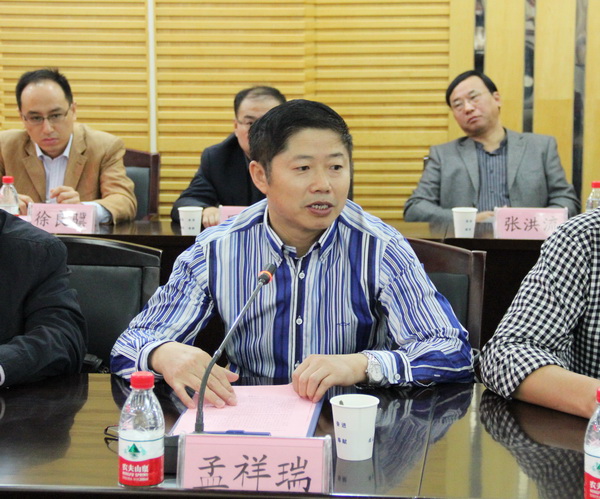 孟祥瑞简要介绍了学校的发展历程,科研工作情况,以及近些年来与四大集团公司开展产学研等方面的情况。
