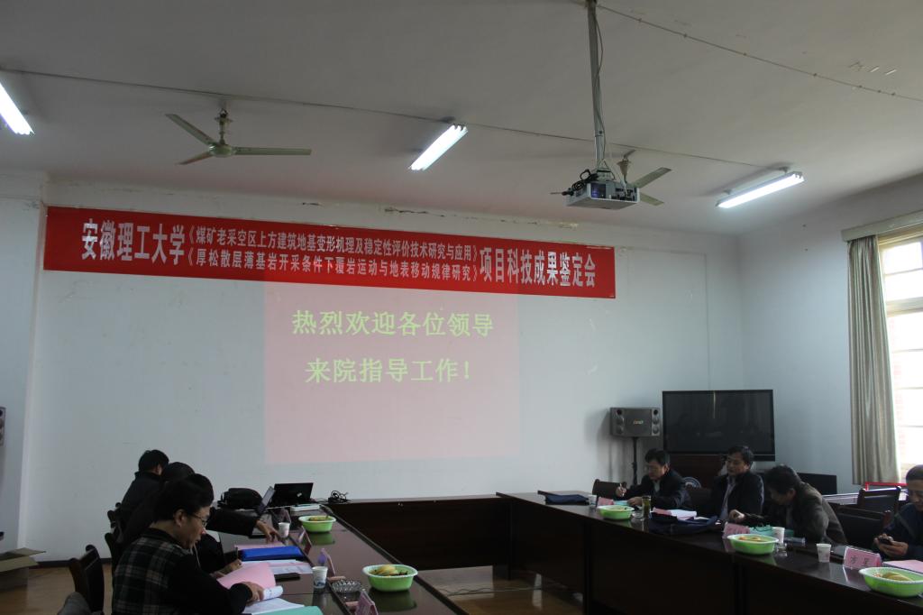 12月15日上午,由安徽省科技厅组织,淮南市科技局主持的安徽理工大学项目科技成果鉴定会在测绘学院201会议室举行,由安徽省国土厅、煤炭工业合肥设计研究院、安徽省地矿局、安徽省测绘局、淮南矿业集团、淮北矿业集团等单位7名专家组成的鉴定委员会对测绘学院徐良骥副教授承担的《煤矿老采空区上方建筑地基变形机理及稳定性评价技术研究与应用》、《厚松散层薄基岩下开采覆岩运动与地表移动规律研究》项目进行科技成果鉴定。