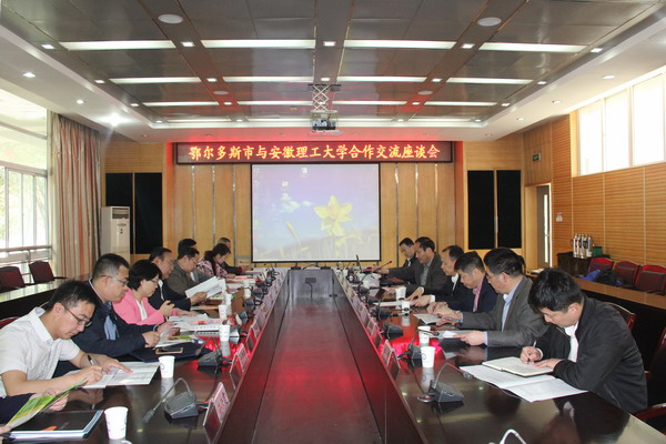4月12日上午,内蒙古自治区科技厅副巡视员云涛,鄂尔多斯市科技局党组书记、局长王评,鄂尔多斯市东胜区区委常委、副区长李芸,东胜区科技局党支部书记、局长张志远一行12人来我校就鄂尔多斯市与安徽理工大学开展合作进行座谈,座谈会在图书馆北会议室举行。校长郭永存、副校长孟祥瑞出席座谈会。座谈会由科技产业处处长华心祝主持。