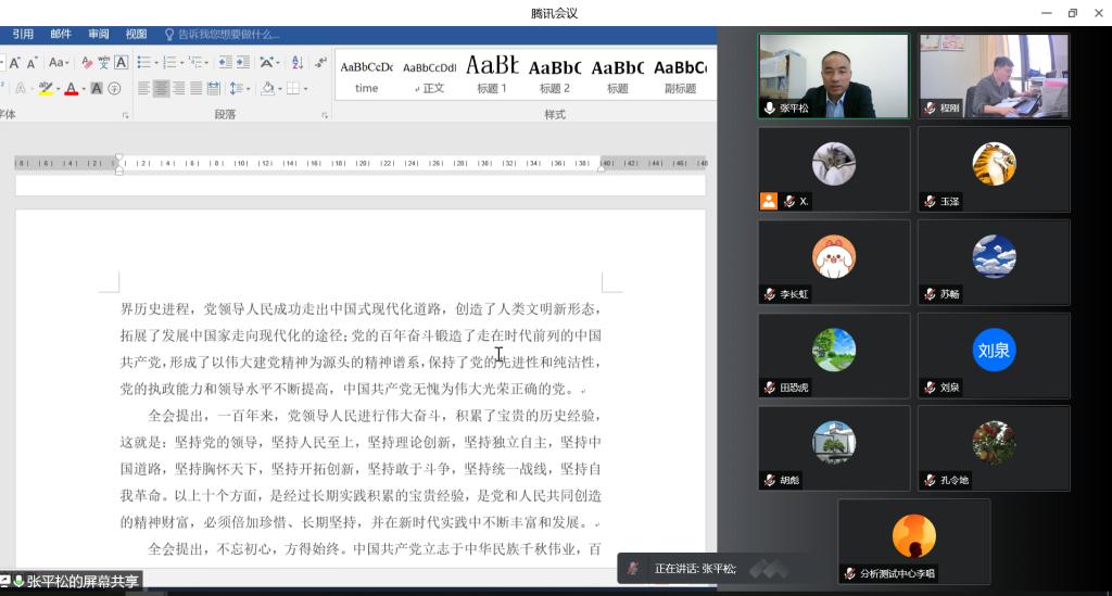 为做好新冠肺炎疫情防控期间的党员教育工作,充分调动党员工作学习的积极性,5月3日下午,科研部党支部组织开展线上党课学习活动,专题学习了党的十九届六中全会精神、劳模精神劳动精神工匠精神、科学家精神等,党课由党支部书记张平松主持。