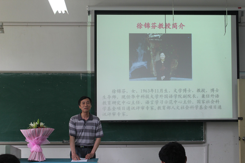 5月24日下午,国家社会科学基金项目通讯评审专家、教育部人文社会科学基金项目通讯评审专家,华中科技大学外语教育研究所所长、语言学习示范中心主任、外国语学院副院长徐锦芬教授应邀来校,在西区医教106教室作了题为《科研项目申报与论文写作》的讲座。院长束学军主持了讲座。